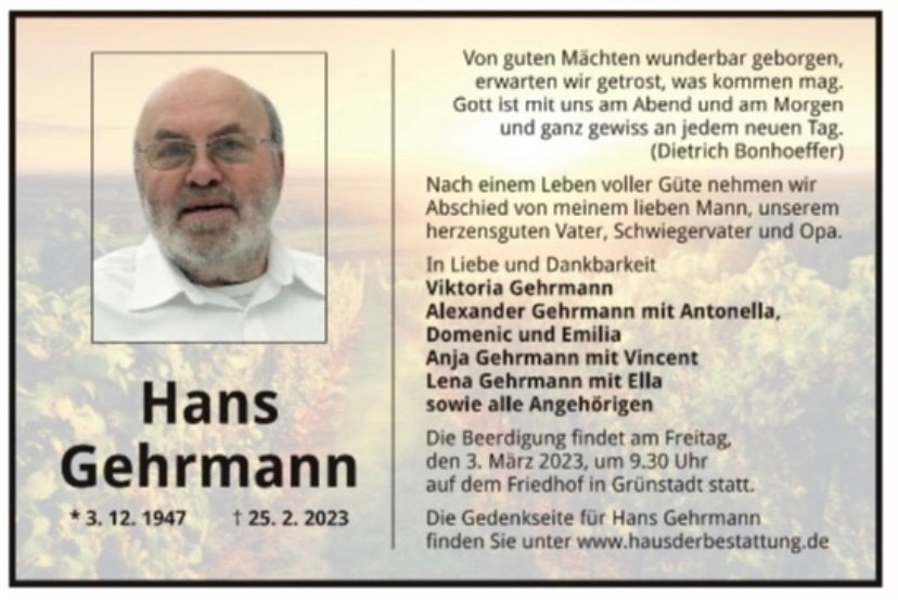 gestorben am 25. Februar 2023 in Grünstadt